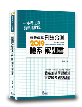 隨著姐妹作《就是這本刑法總則體系+解題書》邁入四版,本書也接著改版。這次改版花了許多心力,更動幅度頗大,針對遺棄罪章、財產犯罪、公共危險罪章以及瀆職罪章等章節進行全盤修正。之所以大幅更改,原因有二:一是本書的內容在前三版時歷經更迭,從兩本濃縮成一本,但刪減的篇幅過多,許多考點都只能蜻蜓點水帶過。這樣打點式的思考,對於過去的司律考試尚且堪用,但各位知道,司律二試從民國106 年開始調整配分,刑法只有一題,占100 分。以這兩年的題目來看,一題作答時間拉長,但考點卻沒有增加,很顯然地,命題者要求考生...