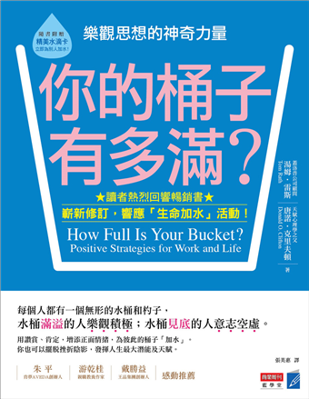 本書自出版以來,好評不斷,掀起熱烈討論「你的桶子有多滿?」的風潮。2016年推出全新封面修訂版,繼續帶動樂觀思想的神奇力量!