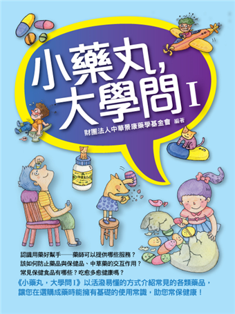 《小藥丸,大學問I 》以活潑易懂的方式介紹各類常見藥品的成分、功效;與使用所需的注意事項;並搭配常見疾病(例如皮膚病、眼疾等)加以輔助解說,希望一般人也能具備基礎藥用常識,降低不必要的藥物傷害與浪費。
