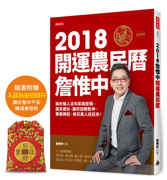 除了農曆出生月外,更可從出生年、時辰來細看不同運勢!在本書中,詹惟中老師利用紫微斗數搭配天干,從個人命盤去精算對應的狗年流年,比起一般農民曆更為精確、且化繁為簡,單用數字就能掌握八大開運重點:添財運、桃花開、廣人脈、避疾厄、防血光、得功名、防破財、找商機!此外,還結合居家風水的概念,教你利用擺設調整自身氣場、提升運氣,書末更提供十二生肖的年月運勢,一書在手,幫你招來好運、破除厄運,狗年旺旺來!