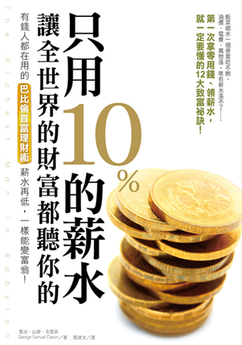 如果要選一本書推薦給每個家庭作為致富傳家之寶,那麼《只用10%的薪水,讓全世界的財富都聽你的》就是上上之選!本書以簡單流暢的文字和生動的故事,將一些簡單、有用,而且永垂不朽的致富和理財法則教導每一個想要變有錢的人,讓我們能更深入的瞭解金錢的本質、讓錢自己流進荷包,並更有效的保有財富!
