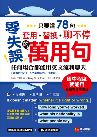 ◆ 利用全書 78 個萬用句,就能延伸運用到各種情境,暢所欲言,溝通無阻礙。