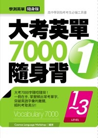 帶著我,隨時背!根據大考中心公布的7000個高中英語參考字彙,依照字彙難易程度分為Level 1-3和 Level 4-6兩冊,以口袋型迷你易攜帶版,方便考生隨時背誦記憶,可以走在哪,背到哪。本書內容完整列出Level 1-3所有常考字彙,以A到Z的順序列表,包括詞性、KK音標、中文解釋、搭配用法、常用片語、同義/反義字,及相關延伸字詞,並附有「教室用語及會話、常用片語、高頻率英文字首字根」等參考資料,幫助在最短時間內達到最佳學習效果,學測指考單字有這本就不用怕!