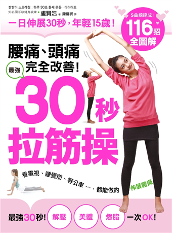 不滿意自己的身材、又不想做激烈運動的人,現在有了更好的選擇!平時沒有運動習慣的人,應該先從「消除平日疲憊和痠痛」開始做起,只要每天做「最強30秒拉筋操」就能輕鬆找到年輕時的充沛體力!「拉筋操」不只能消除身體疲勞,還能幫助瘦身達成!作者更聽到廣大肉肉族的心聲,設計效果強大的瘦身伸展操,站著、躺著都能做,隨時隨地都是減肥好時機。