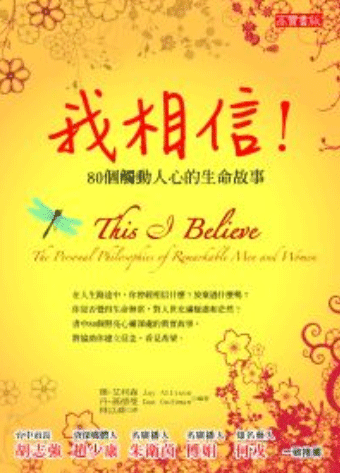 滋養心靈的想法和理念。你可以在他們的臉上,在這本書的照片裡看到它們。在他們的話語中讀到它們。我非常自豪, N P R能夠把艾德華.穆洛的這個傳統帶進新的世紀。也很高興能夠將它們印刷成書,讓我們能夠一再地與這些信仰相遇。」──蘇珊.史丹伯「我的父親艾德華.穆洛說:他人的『新鮮想法』幫助他面對自己的挑戰。這本發人省思的『我相信』散文合輯同時收錄 N P R播送的新節目和一九五0年代原系列的文章,為所有人提供新鮮的想法!」──凱西.穆洛「閱讀這本書使我對這個國家興起一種罕見的感受:對於一起生活在這裡,在背景、經歷和夢想各方面都有極大差異的各色人種,一種非常深切的感受。就像諾曼.洛克威爾的畫作一樣,其中所有的人物都是真實的人,所有的故事都是真的。閱讀這本書使我對美國充滿希望。那是近來很少感受到的希望。」──艾拉.葛拉斯「現在,就和艾德華.穆洛提出『我相信』這個想法的時候一樣,這個思想前衛的作品成為當代犬儒哲學的解毒劑。」──丹尼爾.索爾「《我相信》就是第一修正案的精神,來自社會各階層的美國人──從過去和現在──寫下自己的個人信仰。你會同意一些人的看法。你會反對一些人的看法。