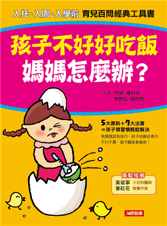 這本書內容包羅萬象,囊括了學齡前兒童的家長會遇到的各式各樣令人抓狂的處境,包括不好好吃飯,頂嘴,大哭大鬧,亂發脾氣,不肯坐小馬桶等等。作者依幼童行為的特性,分門別類為「孩子常見的13種不良生活習慣」、「孩子常見的12種不良行為舉止」,「孩子常見的12種不良舉止」、「孩子常見的8種不良性格」四大類型,附錄還包含了兒童居家安全的保障指南,算是包山包海無所不包,把學齡前兒童家長最困擾的問題都替你一次解決了。開門見山的第一章,就是我家那小子的「不好好吃飯」,看來這個問題已經不只是發生在我家,而是全天下母親無法克服的第一名困擾。