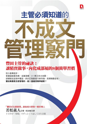 本書作者若松義人,獲得「豐田式生產管理」創始者大野耐一的真傳,在豐田加以實踐及改善,更指導其他產業與企業採用。他集結30年的親身經驗及第一手資料,精選豐田的實例與做法,以及各行各業的應用成果,讓你親身體驗,學會領導者們如何解決8大管理課題,例如: