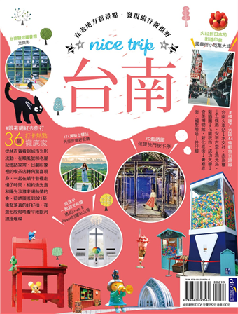 《台南 nice trip》不只是一般的國旅書,他將透過不同的視角,發掘出「類世界級的風景」。全書規劃出7大區域、44條路線,和36個IG網紅人氣打卡景點;並在各行政分區下,規劃出食、購、遊、住等主題,讓旅行者好找、好查閱和好使用。