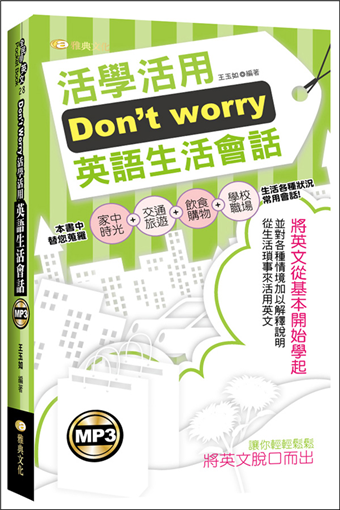 編輯了在家中時光,交通旅遊,飲食購物以及學校職場上的常用會話。將英文從基本開始學起,並對各種情境加以解釋說明,從生活瑣事來活用英文。讓你輕輕鬆鬆將英文脫口而出。根據各種情境歸納成12種主題,在不同時間、不同場所時,面對不同對象時的對話例句。