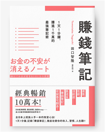 日本暢銷財經書作家田口智隆,30歲前是個負債500萬圓的窮魯宅,他公開親身實踐的「賺錢筆記」──1天限1分鐘寫下筆記,自動構築出一套自己專屬的「生財」「理財」「投資」系統,還清債務又賺進1千萬。