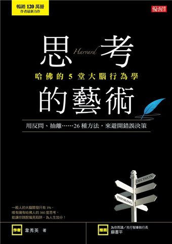 作者韋秀英的著作《態度定高度》與《贏家的習慣》,已在全球銷售高達120萬冊。這次,她透過5堂課,從大腦行為學的角度,搭配實際案例與方法,幫你強化思維能力,避開各種謬誤與陷阱,培養出正確決策的技術。書中提供26種控制大腦的方法,讓決策思考變成一種高明的藝術!