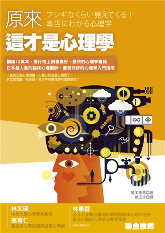 名人推薦:書中內容從一般人最感興趣的社會心理學進入,全部以問題加深印象……,一路涵蓋了認知心理學、發展心理學、人格理論與臨床療法,不但介紹經典實驗,並且以「小常識」的貼心方塊說明書中人名與術語,讀來趣味盎然,深深展現心理學的迷人之處。──林文瑛,中原大學心理學系教授,心理科學研究中心主任