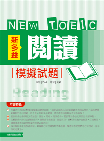 ■本書共含四組完整TOEIC閱讀試題(400題),由美式英語為母語的試題專家精心撰寫,涵蓋簡單到具挑戰性的試題,符合真正的新多益閱讀,使你作答時就如在考新多益般!