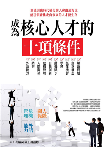 無法因應時代變化的人會遭到淘汰能引領變化走向未來的人才能生存未來的人才不是安於現況的人,而是未雨綢繆的人他們透過不斷地自我開發,培育自己的核心力量不管你選擇在公司中服務,或是獨立門戶自己創業,你都需要具備「解決問題的能力」。在職場上,當你面對各式各樣問題時,你必須有能力提出解決之道,這項能力是未來成功人才必備條件中最重要的一項。掌握趨勢也和解決問題的能力相關。我們都清楚知道一個事實,通才型的工作職缺有越來越少的趨勢,只具備一般能力而非專才的人,在工作職場上的容身之處也越來越狹窄。因此,我們可以預見不久後的未來,對於能解決特定問題的專家需求,有越來越多的趨勢。如果專家除了專精自己的領域外,還對其他領域有基本的知識,那當然是再好不過。即使只專精自己的領域,不熟悉其他領域,對於未來人才來說,也已經具備了基本的門檻條件。解決問題+創意發想+抓住機會+學習+動機賦予+自我創新+危機管理+人際關係+銷售+外語能力不回顧過去就無法把握住現在。有時人們只注意眼前的事物,但是現在的成果中,有一部分是從以往點滴的投資和努力所換來的成果。同理可知,未來的某項成果,也是把以往到現在、延伸到未來某個時間點的所有努力投資加總,也就是,我此刻決定要投資的金錢、時間和精力,將會左右我往後的人生。