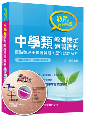 千華為有志報考中學教師檢定的考生,設計出版了這本通關寶典。內容針對其考試科目「課程與教學」、「教育原理與制度」及「青少年發展與輔導」編製,且每科目都包含重點整理、模擬試題,並配合未來命題方向精編題組型擬真情境題,幫助讀掌握考題趨勢。除了將繁瑣的課文內容化繁為簡,讓讀者一目瞭然外,更精心模擬了仿真試題,培養應考實力,另在第四篇的最新試題中,收錄102~104年教檢試題,並做命題分析。此外,將94~101年試題收錄在隨書光碟中,讓讀者更能掌握命題方向。考前總複習最佳工具書,非本書莫屬,想成為教師的您千萬不要錯過!