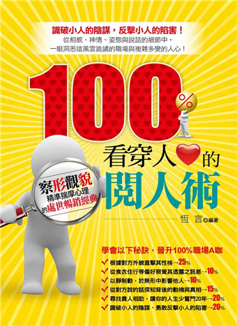 本書不但告訴大家識別人心的方法,並透過夾敘夾議的說理方式解析影響他人的奧妙;不但通俗易懂,更有生動形象的現實案例;告訴讀者如何與同事、領導者和朋友相處,告訴大家如何與陌生人,甚至小人打交道。透透過本書,讀者可藉由察言觀色,聽懂弦外之音,巧妙避開身邊的人設下的陷阱,懂得如何建立威信、施予影響力,進而與周圍的人和諧共處。