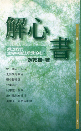畢竟,如果無苦,就不明白甜的況味,如果沒有離愁,也許相守就不那麼值得珍惜,如果可以永生,生命也就不需那般緊緊相繫。於是相信,情緒是自然產品,平凡得如士林夜市販賣的蚵仔煎。-------------------------------------------- 活一個快樂的今日 真的!活一個快樂的今日吧,現在過得好不好才重要,如果每個今日都是好日,那麼所有的好日子就可以串連出美好的一輩子。 真心的做每件事,真誠對待每個朋友,真的喜歡每個與你擦身而過的東西;再用清明、有趣、貼心的方式,與天地為友。 何必與人爭執,時間是那般的珍貴,過了今天之後,誰又能知道,是不是還有明天。 說出所有想說的話,不必老用捉迷藏的方式讓人來猜,畢竟再過百年,上帝就會收回「成命」。 試試看,用這樣的點子過活,也許...也許人生就不再會那麼悲情,生命會現出另一種況味。 這樣的心情轉折,我喚它「心解」,或「解心」,既然成了書,就叫它「解心書」吧!