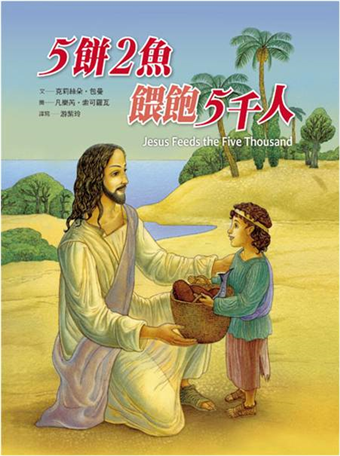 大家都喜歡跟隨耶穌,聽祂說話。有一天,當有約五千人聚集在野外,聽耶穌講福音,不知不覺天色暗了,每個人都很餓很累了,耶穌對祂的門徒說:「你們沒他們吃吧!」問題是野外根本買不到吃的,這時候,有個小男孩拿出自己帶的五個餅、兩條魚,獻給耶穌,沒想到,神奇的事發生了……