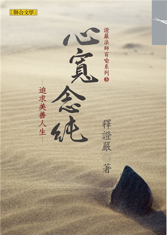 繼百喻系列《一秒鐘和一輩子》、《過關》,本書是2007年證嚴法師最重要的著作。「眾生病,故菩薩病」,《維摩詰經》如此明確且殷切的說明了:感應一切眾生之病苦,如是之故,菩薩生慈悲心。「濟世救人,慈濟為懷」,正是慈濟的精神中心與志業之所向,從救濟的「慈善志業」起,證嚴上人深知貧苦多因「病」而起,是以賡續而有「醫療志業」之踐履,繼之「教育志業」、「人文志業」次第推廣施行,而有慈濟大學等各級學校、《經典》諸刊物及「大愛電視台」之創辦;揆諸過往,從一九六六年「佛教克難慈濟功德會」創辦至今,四十年倏忽而過,四大志業依序而進、同時並行,粲然有成,花開多瓣!直心即道場,「做慈濟」更是道場,慈濟人充分踐履師志,人間即靈山,自可拈花而微笑。第五個十年的開始,上人提醒:不忘回到慈濟志業創辦之初的「竹筒歲月」,提醒慈濟人不忘本心、發心如初。希望慈濟人能做中覺知,知行合一,祛除根本無明,而見天心月圓。因覺知眾生苦,悲心相契,因救拔眾生苦,而同體大悲,人命有其局限,慧命卻可無窮,追求慧命的路上,上人帶領新舊慈濟人一路而行,隨機逗教,法語如雨,可以洗去胸中之垢之塵,上人之言可以內求解脫,外助他人,勇猛精進,不憂不畏不怖矣!「證嚴法師百喻系列」第三集名為《心寬念純》,上人說:「心寬是善,念純是美,心寬念純就是美善,就能令人歡喜;這就是人文的根本。」期待更多發心發意的菩薩以真誠的愛心、純真與寬大的心胸,共同成就美善的人間。
