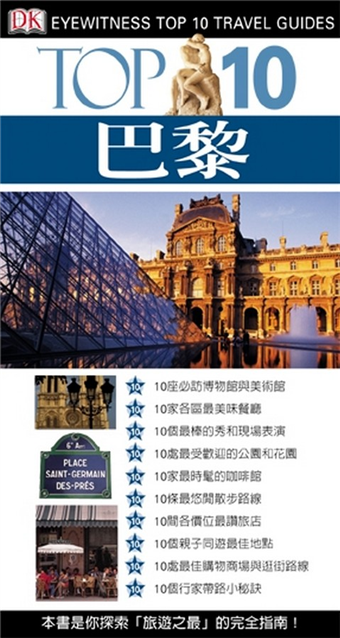 本書是你探索「巴黎旅遊之最」的完全指南!花都巴黎擁有眾多世界著名的觀光勝地與慶祝活動,還有各種文化盛事值得注意。從巴黎聖母院到艾菲爾鐵塔、從白天到黑夜都有豐富的新鮮事等待旅人來挖掘。。無論你是想來趟奢華旅行,或是只想做精打細算的背包客,這本《TOP10巴黎旅遊指南》將帶領你體驗前所未見、最棒的巴黎。書內精心蒐集巴黎各類10大名單:從高級服飾到節慶活動、餐廳、旅館、博物館與教堂等,一網打盡遊客所需資訊。為了幫你節省時間和金錢,本書更詳細列出10大注意事項供你參考。本書前後附有拉頁大地圖,書中並且收錄56幅分區地圖,詳細標出知名景點、車站、地鐵等交通資訊,讓你可輕鬆找到目標景點,不怕迷路。