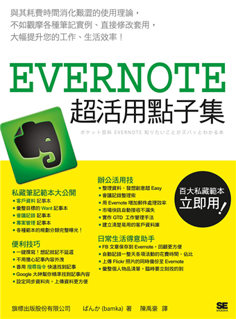 Evernote 是近來非常熱門的雲端記事服務,對於剛接觸 Evernote 的人來說,最大的困擾是「到底可以用 Evernote 來記什麼?」、「怎麼用才可以帶來助益?」市面上不乏 Evernote 相關書籍,不過對於 Evernote 要記什麼?該怎麼用?往往得耗費時間消化艱澀的使用理論,本書直接提供大量記事點子以及現成的筆記範本讓您修改套用,藉由觀摩各種筆記實例,記下來、找的到、隨時派上用場,工作、生活效率必定大幅提升!