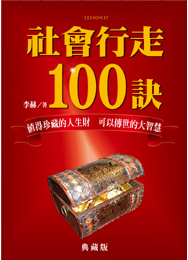 1部值得傳世的經典著作;100條社會生存的必備法則該怎麼在社會上行走,才能夠平安穩健?有沒有什麼樣的行為準則,能夠立足社會,永保不敗?《社會行走100訣》的作者李赫,以其犀利的文字,將社會行走必備的觀念、行為準則,以及社會上普遍存在的現象、人與人之間互動的原則做了十分詳盡且精準的剖析,甚至還進一步探討了人的心態。這不是一本教人詐術的書,書中也沒有取巧、投機的行為和心態,書中的100條法則,不但條理分明,且字字珠璣,即便是充滿人生哲理的書,在作者的筆下,也仍然處處透著恆常不變的智慧,是一本值得傳世的智慧知書。