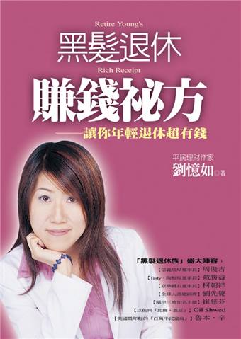 這是一本從18歲到55歲人都應該看的一本書教你如何用「有限」的時間,賺取「無限」的金錢大多數人都希望能夠提早退休,但是卻缺乏提早準備的行動,本書中,「理財小姐」劉憶如,提供你國內外15種「黑髮退休又有錢」的致富秘訣,加上信義房屋董事長周俊吉、Tasty陶板屋董事長戴勝益、京華鑽石董事長柯朝祥、全球人壽總經理劉先覺、兩岸三地知名主播崔慈芬、以色列「比爾蓋茲」GilShwed、英國最年輕的「百萬平民富翁」魯本辛……十五位名人的經驗分享,讓你可以用一半的人生,專心的來做自己童年以來就想完成的事,而不用再擔心錢的問題。