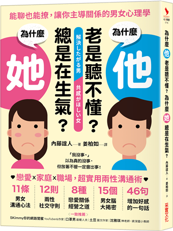 閱讀本書,可以讓各位讀者釐清異性言行舉止背後的「真心話」,跟異性相處也會更加輕鬆愉快。只要掌握男女心理上存在的差異,就算面對異性採取難以理解的思維模式或是行動,相信各位也可以一笑置之吧。