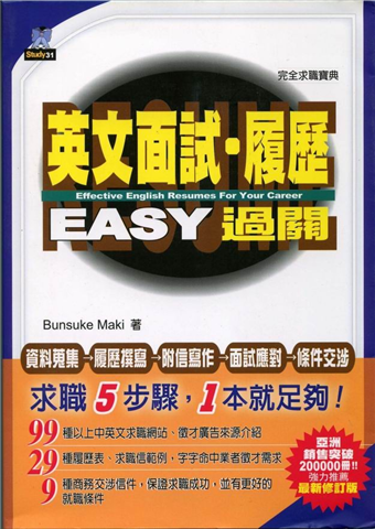 廣告商要創意,研究員要嚴謹,你絕對不能將美式履歷表要求的自我能力展現,拿來套用在英式履歷表中。在五花八門的履歷表中,英文履歷絕對不是只需要一流的英文實力就能寫得好的。本書根據種種不同履歷範例,教你如何針對各行各業的喜好及自身的條件,做出讓雇主「就是要你」的履歷表。