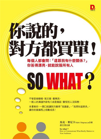 內建「So What思維」,你說的每一句話都有力量。從此,你在意的事、在乎的人、想成交