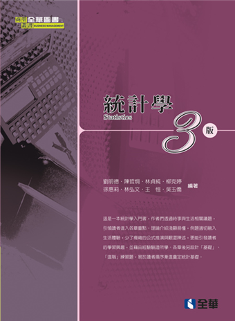 第1章 概 論前言1.1 統計學是什麼1.2 母體與樣本1.3 敘述統計與推論統計第2章 資料與圖表前言2.1 變數與資料2.2 類別資料的繪圖2.3 數值變數的繪圖2.4 相對次數直方圖2.5 Excel應用範例第3章 統計量前言3.1 集中趨勢統計量3.2 變異性的統計量3.3 謝比雪夫定理及經驗法則3.4 相對位置統計量3.5 Excel應用範例第4章 機率導論前言4.1實驗、樣本空間與事件4.2 事件機率的基本運算4.3 條件機率4.4 總合機率法則與貝氏定理第5章 隨機變數與機率分配前言5.1 隨機變數5.2 機率分配5.3 期望值與變異數5.4 期望值與變異數的性質第6章 離散型機率分配前言6.1 離散均勻分配6.2 伯努利分配6.3 二項分配和多項分配6.4 負二項分配和幾何分配6.5 超幾何分配6.6 卜瓦松分配6.7 Excel應用範例第7章 連續分配前言7.1 連續機率分配7.2 常態分配7.3 常態分配的機率7.4 一般常態分配機率值7.5 指數分配7.6 Excel應用範例第8章 抽樣分配前言8.1 抽樣方法8.2 的抽樣分配8.3 其他有用的抽樣分配8.4 Excel應用範例第9章 區間估計前言9.1 點估計9.2 區間估計9.3 母體平均數的區間估計9.4 母體變異數的區間估計9.5 Excel應用範例第10章 假設檢定前言10.1 假設檢定之概念10.2 母體平均數的假設檢定10.3 型Ⅰ誤差與型Ⅱ誤差的計算10.4 檢定力曲線與作業特性曲線10.5 母體變異數的假設檢定10.6 Excel應用範例第11章 卡方檢定前言11.1 基本概念11.2 適合度檢定(包含多項式母體比例檢定)11.3 獨立性檢定11.4 齊一性檢定11.5 應用卡方檢定注意事項及限制11.6 Excel應用範例第12章 變異數分析前言12.1 變異數分析的意義12.2 一因子變異數分析12.3 Scheffe''s多重比較法12.4 二因子變異數分析12.5 Excel應用範例第13章 相關與迴歸前言13.1 相關13.2 簡單線性迴歸13.3 迴歸線的變異分析13.4 複迴歸13.5 Excel應用範例附表表1 二項分配機率值表表2 卜瓦松分配機率值表表3 Z值到3.0~3.09之表表4 t-分配表表5 卡方分配表表6 F-分配表習題解答