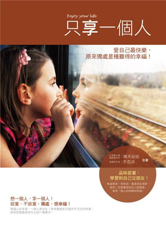 在《只享一個人:愛自己最快樂,原來獨處是種難得的幸福!》(原出版書名:給你的寂寞,得到幸福)中關於寂寞與幸福的交鋒,是多年來自己或他人生命與人生閱歷的體悟與覺察,然後豁然開朗後的省悟與面對。不論是隨意翻閱的你,或是正拿著這本書走向櫃檯結帳的你,如果能在這本書中找到一絲幸福、快樂或自在,對我來說,都是極大的榮耀!獻給所有懂得享受一個人,享受獨處時光,且一直被幸福圍繞的你!