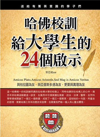 「與柏拉圖為友,與亞里斯多德為友,更要與真理為友。」這一哈佛唯一的校訓赫然鐫刻在哈佛大學的校徽上,同時也鐫刻在哈佛人的心中。幾百年來哈佛追隨著這一訓言,在風雨中引領美國在商業、政治、法律、醫學、自然科學等領域開創了一個又一個奇蹟,成就了一個又一個菁英。這短短的一句話,所蘊含的哲理,需要哈佛三百年的歷史來詮釋,也需要我們每一個人用心靈去體悟。