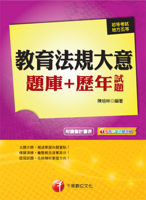 一、歷年試題完整解析。針對初考及五等特考的教育法規大意試題,配合最新法規,逐題詳解及命題分析,有助讀者掌握每個題目的相關概念。