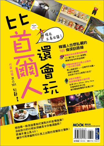 漢江新觀景勝地、首爾最後的祕密庭園,白沙室溪谷、充滿藝術家工坊,可以嘗試各種手作體驗的延禧洞;在狎鷗亭打造世上唯一的情侶戒;尋找韓國的樂團與獨立音樂……101種行程,330個地點,讓你比首爾人還會玩首爾