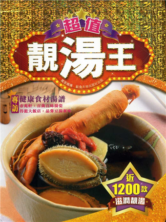 本書輯錄了日常湯水1200款,集老火湯、燉湯、滾湯、羹之大成,以肉類、水產類、蔬果類和乾貨類分類。以「菌和豆類」為專題,訪問廚師和名人。菌類分乾菌和鮮菌,主婦可以到超市買乾菌來處理,亦提及不同時令鮮菌的口感分別。豆類方面,黃豆、眉豆、芡實、紅豆、綠豆等有不同功效,而不同省份用豆煲湯方式亦不同,如客家人滾排骨,而上海人做百葉湯,亦是有趣話題。並介紹數十種食材,包括性味、營養成分和選購要點等。分類清晰明確,集經典傳統和創意新穎的菜式。包裝典雅精美,有王者之尊,為家庭湯水製作的珍藏工具書。