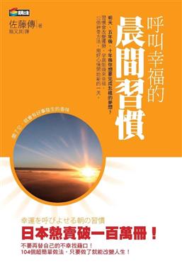 《九宮格圓夢計畫》作者佐藤傳於日本熱賣百萬的作品!明天、五年後、十年後你想要完成怎樣的夢想? 習慣會改變運勢,早晨能喚來幸福,52個神奇方法,用好心情開始新的一天。將夢想掛在嘴邊是實現夢想的第一步,打掃玄關,可以啟動成功循環裝置,隨身攜帶自己最幸福的照片,隨時看一眼自己的格言,利用葡萄柚香氛刺激腦波,在清晨沐浴活化腦細胞……早晨的陽光能提高生命能量,在此時寫下夢想,凝視它,未來藍圖就在眼前呈現。