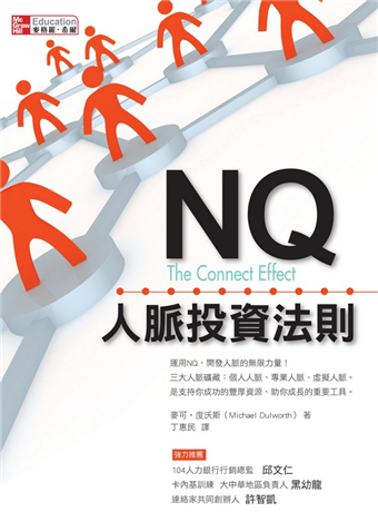 運用人脈是一項相當重要的技巧,但只有極少數的人意識到它的力量,並持續開發、維持與善用。在本書中,作者揭開個人、專業與虛擬人脈的面紗,讓讀者了解人脈如何神奇地改變我們的生活,作者並提供了許多創新的工具,包括一個可衡量你的人脈智商的測驗,這些工具可幫助你界定、拓展與善用你的人脈,進而提升你及你周遭朋友的生活。