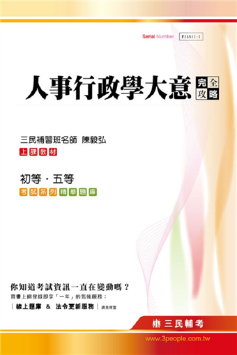 人事行政學大意完全攻略適用初等考試(初等、初考)及五等特考(地特、身障特考)。高普初考、地方特考皆設有人事行政類科,歷年缺額平均達3位數,為行政類前三高,是進入公職之首選。