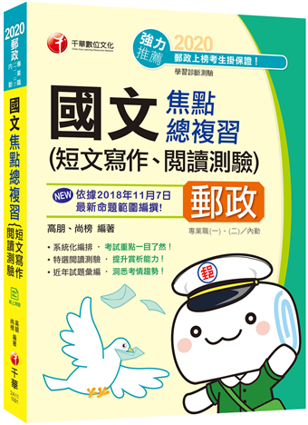 針對「考試焦點」與「作答方法」,作最精華的重點濃縮,使您能在考前的最後關鍵時刻,快速閱讀及記憶,並輕鬆抓到考試重點。國文考科中以「短文寫作」的占分最多,高達60%,本書特別就「短文寫作」的內容予以加強,以求符合考試趨勢。