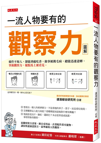 要培養觀察力,可以先從妥善運用「觀察」技能做起,養成良好的習慣,在日後不論是工作或生活上,必定可以帶來許多的幫助與好處。透過這本書,你可以學到不少累積觀察力的技巧、方法,還有職場實戰的應用,對於自我成長,或是爭取工作表現,定能有所幫助。