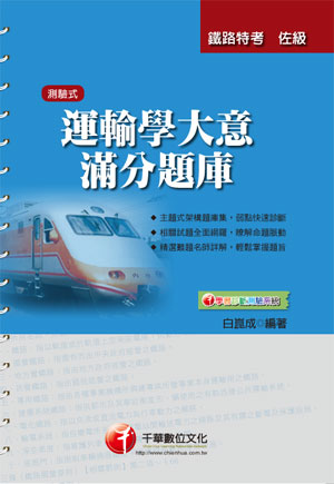 爲協助有志在鐵路特考中脫穎而出,順利上榜的考生,作者乃特別精心編輯此「滿分題庫」專書。本書中除依章節將各類運輸系統中較可能出現的題目,精挑細選地逐一撰寫試題外,對於較難或概念較易模糊的題目亦加以適當的解析,以助考生了解,俾利記憶。若能同時購買千華公司的「運輸學大意」一書,加以參考對照,深入了解題目有關的概念與內容,必將能收事半功倍之效果。本書編者用心良苦歸納整理的題庫,一定能幫助讀者更上一層樓。