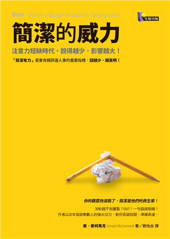 在這個注意力匱乏的時代,長話短說是大家迫切需要,卻十分罕見的特質。若我們無法做到清楚扼要的表達,則慘痛後果不一而足:浪費時間、金錢與資源、在混亂中勉強做決定、深具價值的點子遭到淘汰、走偏了方向、談好的交易總是陷入泥淖。