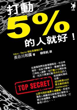 若能鼓起5%社員的幹勁、點然他們的熱情,那一股熱情將立即感染整個公司,組織的本質也將開始180度大轉變。連之前只要一到下班時間就像逃難般閃人的社員,開始積極自動加班到很晚,甚至頭腦不知變通的幹部們也都淘汰沒有效率的做事方法,不斷地向新工作挑戰。