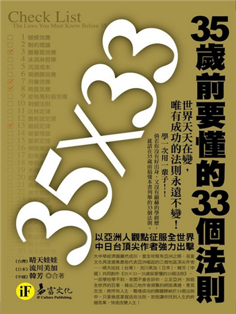 大中華經濟圈儼然成形,當全球聚焦亞洲之際,易富文化再度邀集最能代表亞洲崛起的三個地區頂尖作者──晴天娃娃(台灣)、流川美加(日本)、韓芳(中國)共同創作《35×33-35歲前要懂的33個法則》。