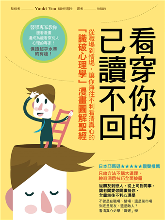 全書共有65個常見的狀況漫畫劇及心理學知識說明情境,並以一個表格整合重要資訊。讀者可以用最輕鬆的態度,及最短的時間掌握全書內容,並依符合自已的情境內容,輕鬆閱讀並吸收,讓你成為洞察人心的心理學大師!