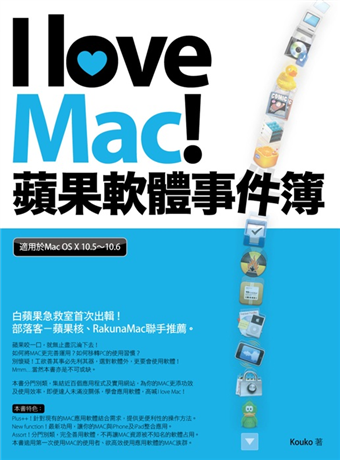 本書分門別類,集結近百個應用程式及實用網站,為你的MAC更添功效及使用效率,即便達人未滿沒關係,學會應用軟體,高喊I love Mac!