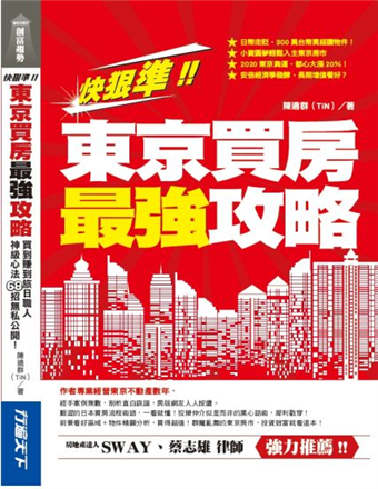台灣人的瘋狂程度從網路新聞的話題可見一般,只要在GOOGLE輸入東京買房、日本不動產關鍵字,立刻會跳出上百個廣告連結、更有許多日本購屋粉絲團成立,去日本不再只是自助旅行,買買名產和藥妝,買房子儼然成了新興事業。本書由旅日專業不動產工作多年的作者執筆,用深入淺出+實際案例故事+清晰圖表的方式,告訴你東京買房的終極心法。