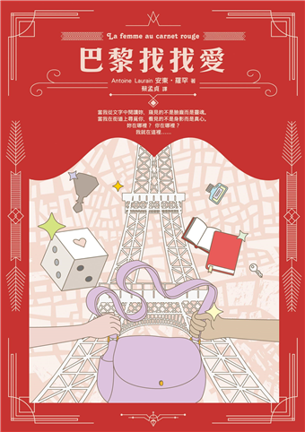 晚上快十一點了。羅藍還坐在地上,不過四周倒是圍了一圈東西,他整個人沉浸在這本Moleskine的紅色筆記本裡,裡頭十幾頁記錄了這位陌生女子的心情想法,有時候字句被塗抹掉,有些則在底下畫了底線或是以大寫字母強調。字跡優雅圓潤,主人應該是想到什麼就隨興地隨筆記錄,多半是在咖啡館的戶外露天座或者搭乘地鐵時寫的。這些心情筆記,雖然文句沒有關聯性或章法,且略顯瘋癲,卻能觸動人心,極富感情,讓羅藍愛不釋手。他打開了通往這位淡紫色皮包女主人的內心之門,雖然他沒有立場可以看這本小筆記本裡的內容,他卻無法割捨。沙夏.季特瑞的台詞閃過腦海:「注視沉睡中的人,無異私自翻閱一封並非寄給你的信。」一瓶酒只剩半瓶了,碎牛肉馬鈴薯泥則被遺忘在廚房的流理台上。