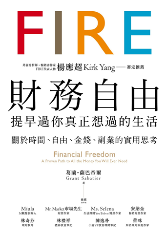 本書是一幅路徑圖,通往令人嚮往的人生方向,加入全球性的FIRE潮流,從此再也不必為錢工作,開始真正從事自己有興趣的志業。